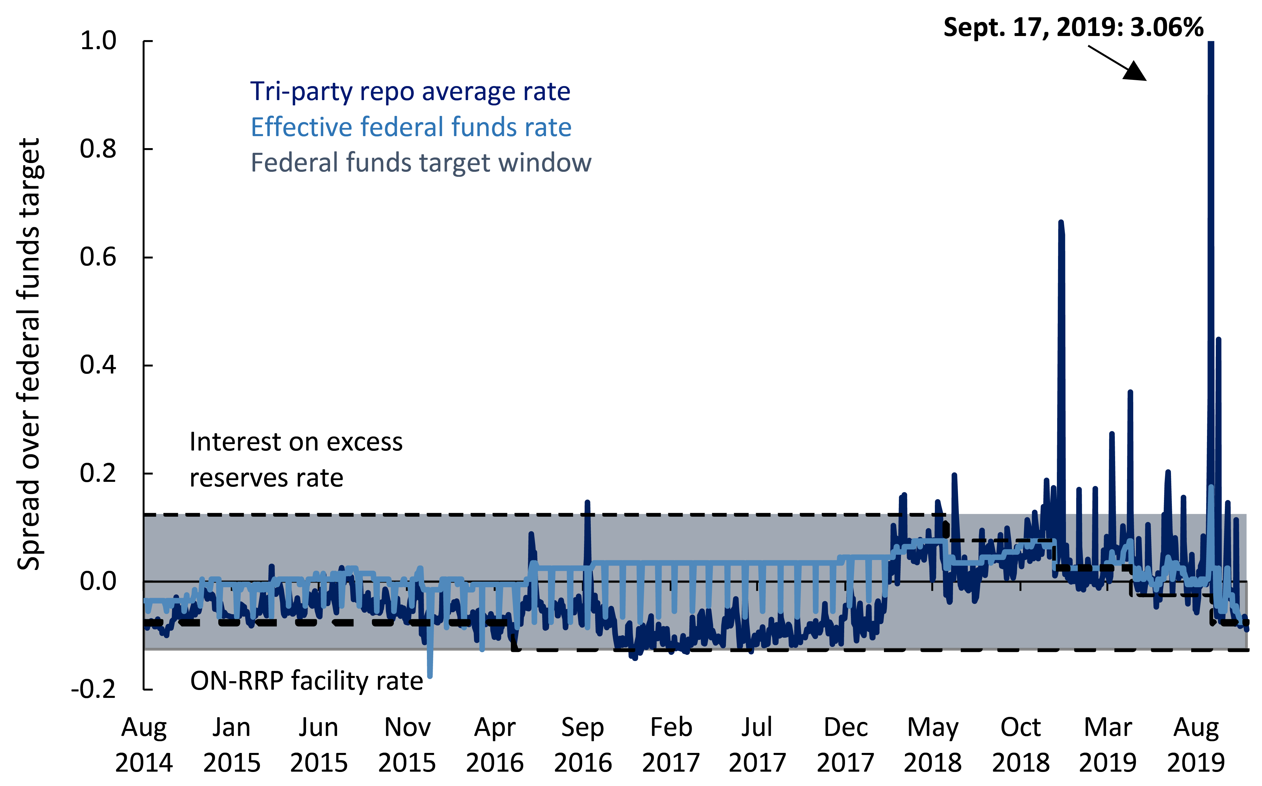 In September 2019 a confluence of events rapidly drained liquidity from the system when corporate tax payments pulled reserves whilst a large settlement of newly issued Treasury securities did the same. Reserves fell below what turned out to be the system’s minimum comfortable level, and the result was overnight repo rates spiking dangerously. The ratio of liquidity to collateral was out of sync. Money markets broke before policymakers fully understood where the threshold was.