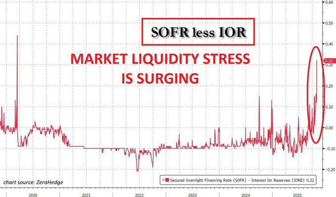 At the beginning of November, we reported that SOFR - IORB spread spiked to 32bps, the highest since 2020.